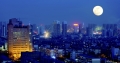 昨天风很大,19层楼的楼顶上风更大。省气象台的天气预报说,大风过后气温将有大幅度下降。其实,不用说再降,太阳落山后的气温就已经够低的了。虽然我换上了羽绒服,穿上了皮棉鞋,但在楼顶没呆几分钟就感觉到天气的寒冷了。此时的城市,在相机里也开始变成了冰一样的蓝色。一轮明月挂在城市的上空,似乎是在提醒着忙碌了一年的的人们“圆”的重要意义。也就在此时,南面东面和北面的烟花开始多了起来。